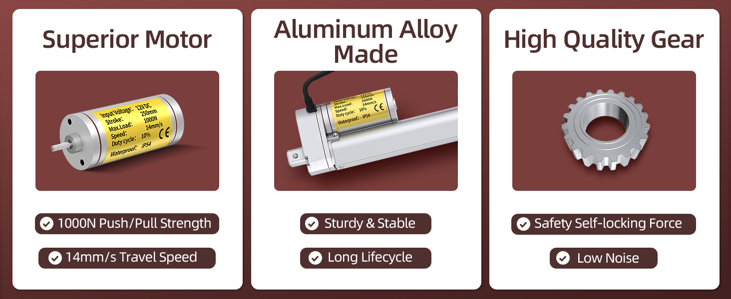 1000N/220lb 12V Linear Actuator with Switch Controller – Multiple Stroke Options Features