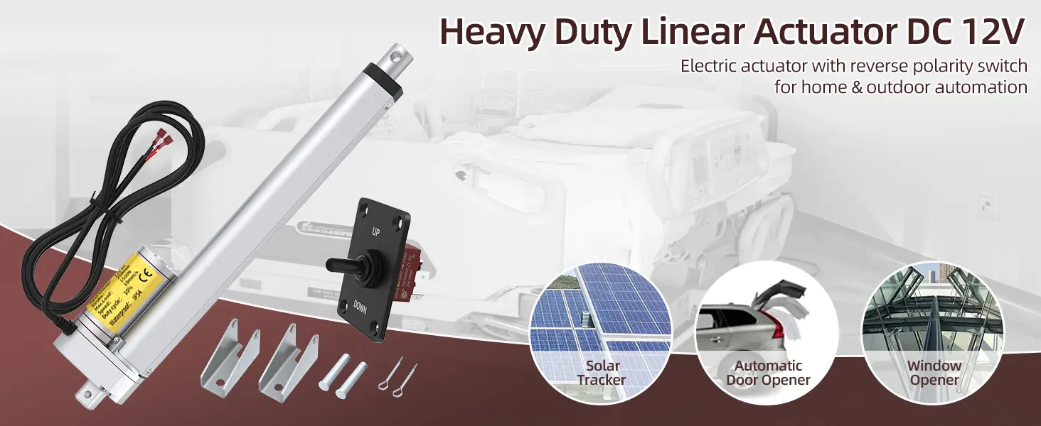 Ideal for industrial automation, agricultural machinery, solar tracking systems, custom furniture automation (lifts, recliners), robotics, marine applications (hatch lifts), medical equipment, material handling, ventilation control, and various OEM projects.
