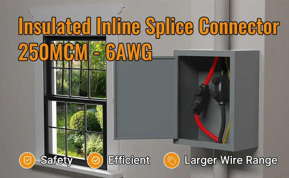 This 2-port inline splice connector is designed to simplify and enhance wire splicing for demanding electrical projects. It accommodates wire gauges ranging from 250 MCM to 6 AWG, making it suitable for a wide range of applications, from high-power circuits to smaller wiring needs.