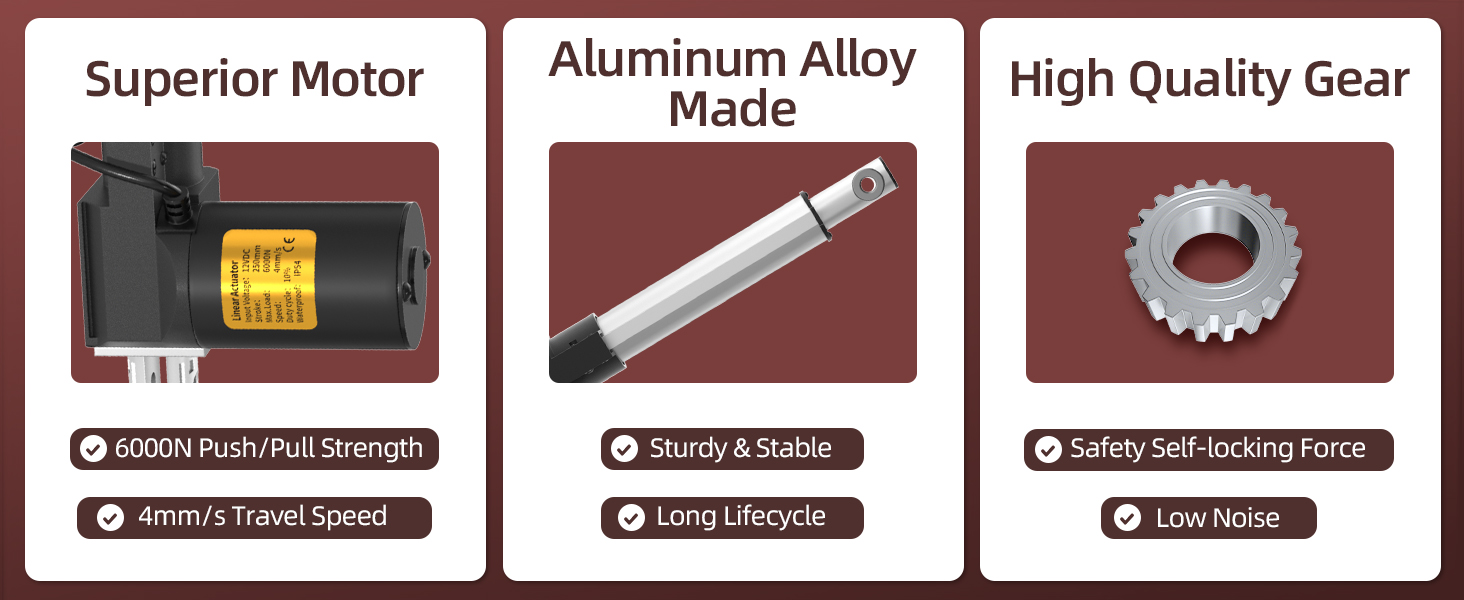 6000N/1320lb 12V Linear Actuator with Switch Controller – Multiple Stroke Options Features