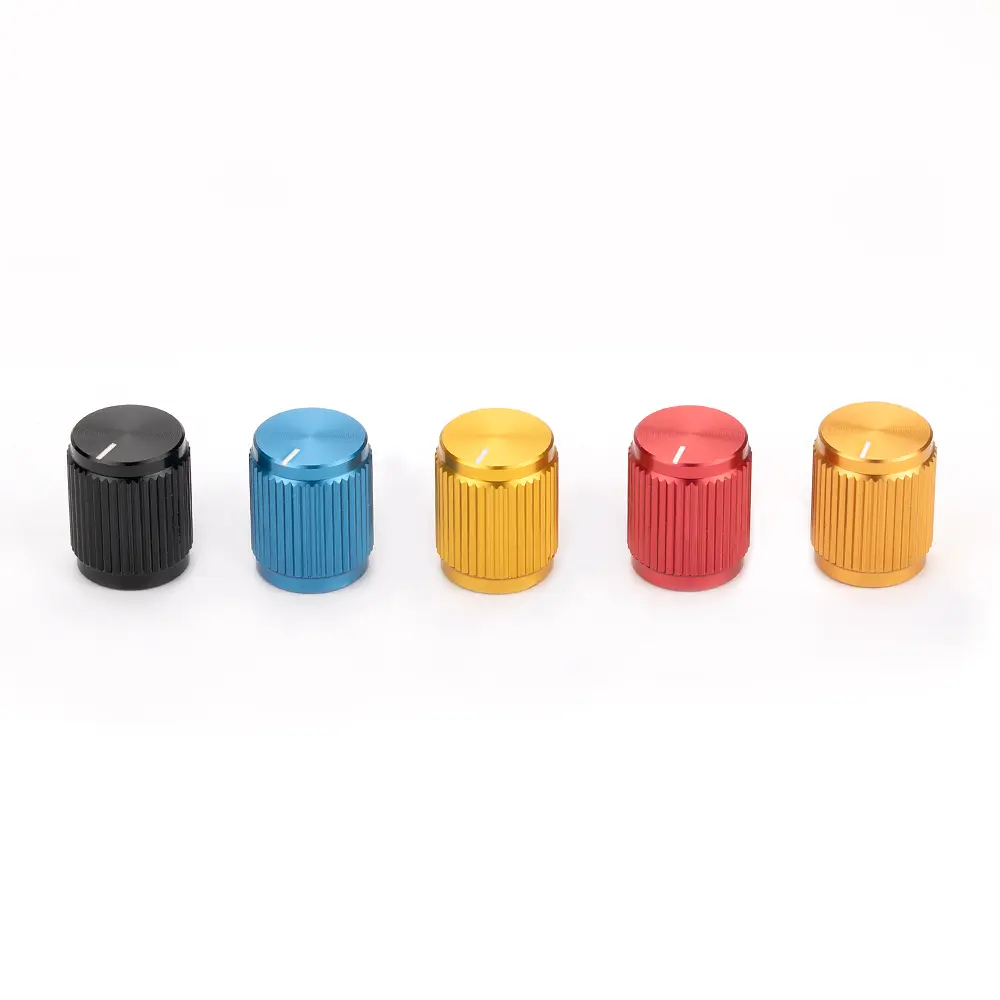 These anodized aluminum knurled potentiometer knobs are specifically designed with a 12.9mm outer diameter to fit standard 1/4″ (6.35mm) shafts and are available in multiple vibrant colors.