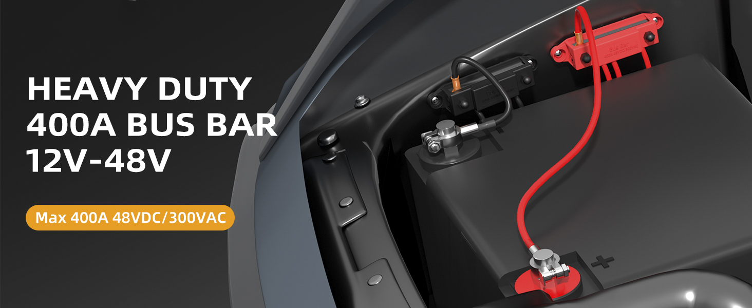 This 400A power distribution block is designed for high-current applications, capable of handling up to 400A in a 12V DC circuit and supporting a maximum of 48V DC or 300V AC. This heavy-duty capacity makes it suitable for demanding electrical systems in various vehicles and applications.