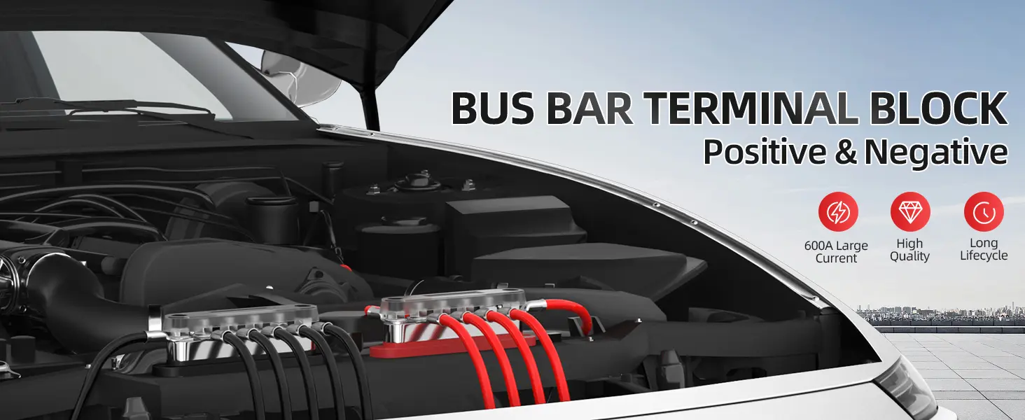 This 600A power bus bar distribution block offers a robust solution for managing high-current electrical systems. The set includes both a positive and negative distribution block, each capable of handling up to 600A, ensuring efficient and reliable power distribution for demanding applications.