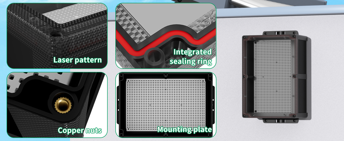 The junction box features an integrated sealing ring and copper nuts, creating a tight and secure seal to prevent moisture and dust ingress. This ensures the safety and reliability of your electrical connections, even in harsh weather conditions.
