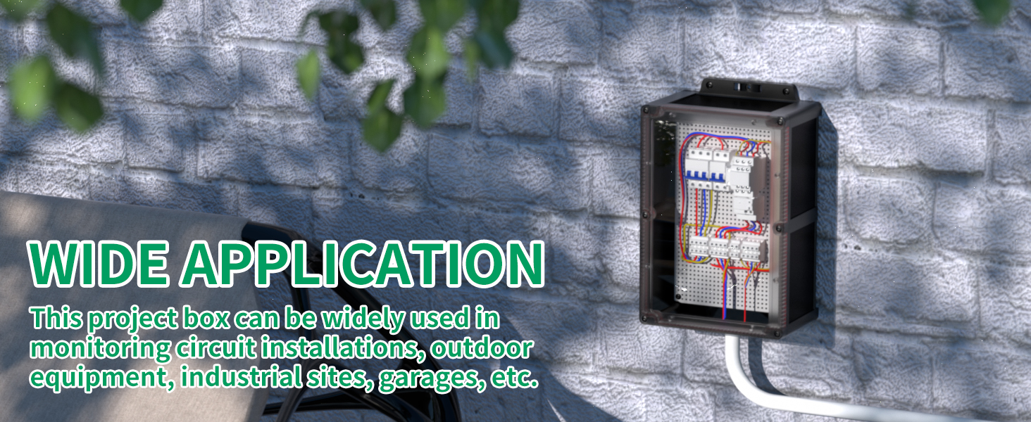 This versatile project box is ideal for various applications, including monitoring circuit installations, housing outdoor equipment, protecting electrical connections in industrial sites, garages, and more. Its durable and weatherproof design ensures reliable performance in diverse settings.