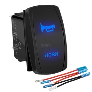 DR-A11L24G Horn Button Rocker Switch Blue LED 12 Volt, Auto Train ATV Boat Marine Toggle Switch Momentary Waterproof 12V