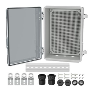Product Details Ask For QuoteAG28X19X13T-JFFD IP66 Waterproof Outdoor Electrical Junction Box Kit with Clear Cover – 11″ x 7.48″ x 5.12″