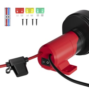 Engineered for reliable custom applications, this M12 adapter features durable ABS construction, heavy-duty 12 AWG silicone wiring, an accessible power switch, and included blade fuses for enhanced safety.