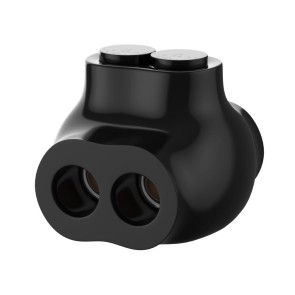 The 2/0-6AWG single-side 2-port pre-Insulated multi-tap connector secure connections between multiple conductors with a rounded design and UV-resistant insulation coating.