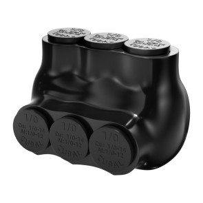This 1/0 AWG - 14 AWG 3-port single-sided entry insulated multi-tap connector is designed for Aluminum to Copper connections and features an dual-sided entry design.