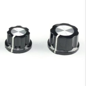 These aluminium rotary electronic control potentiometer knobs are available in silver or black and have an external diameter of 13 mm for 6 mm/6.35 mm shaft holes.