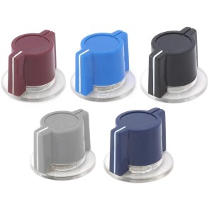 These 1400 style knobs are available in a variety of colours with an outer diameter of 17.2mm (Pointer not included) for a 1/4"(6.4mm) shaft hole.