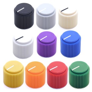 These Neve Marconi style effect pedal knobs are available in various colours with an outer diameter of 26mm for an 18T/6.35mm shaft hole.