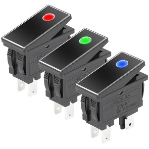 The red illuminated 4 Pin 250VAC/30A rocker switch is handling large currents up to 30A at 250VAC, T125, 1E4, ON-OFF, DPST with lamp.