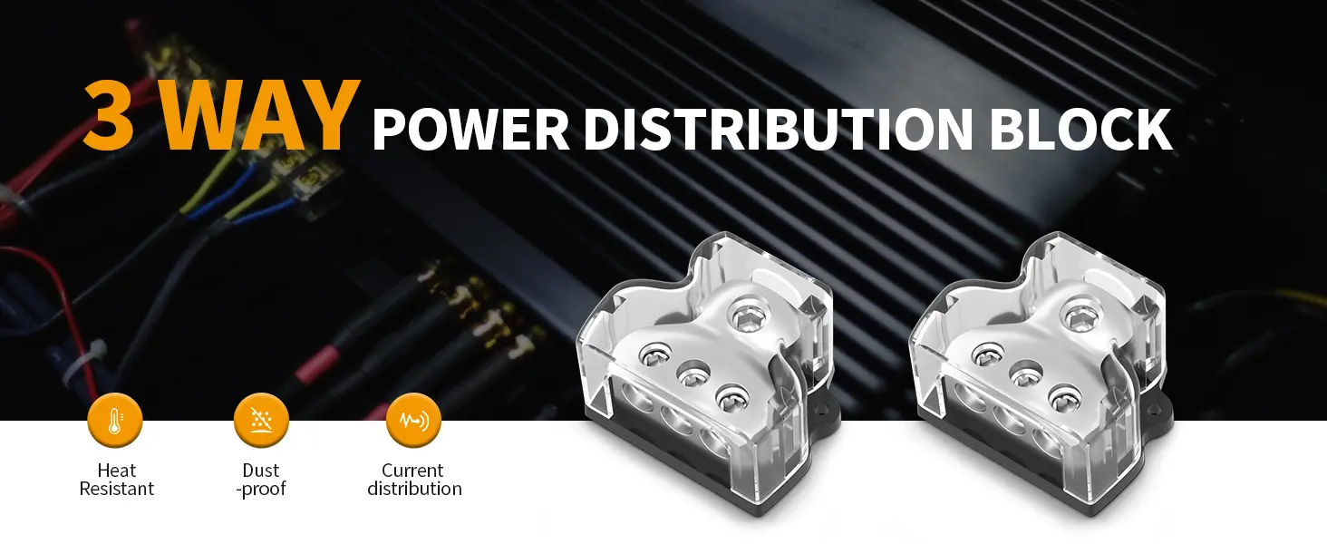 This 3-way power distribution block simplifies and enhances the wiring of your car audio system. It efficiently distributes power from a single input source to three separate output connections, providing a clean and organized solution for your amplifier setup.
