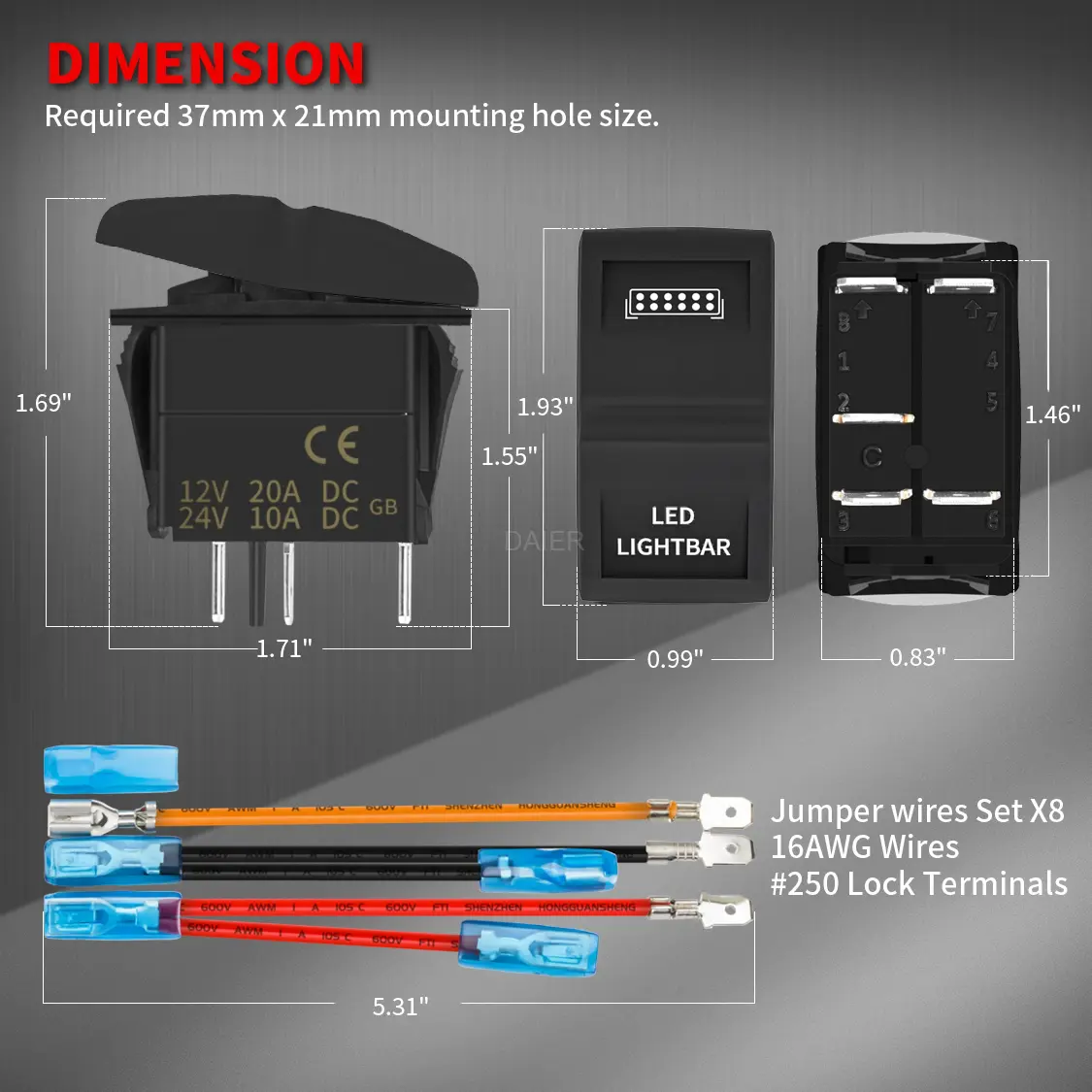 DR-A11X25 LED Boat Rocker Switch, LED Light Bar Rocker Switch, Laser On/Off 20A/12V 10A/24V Switch
