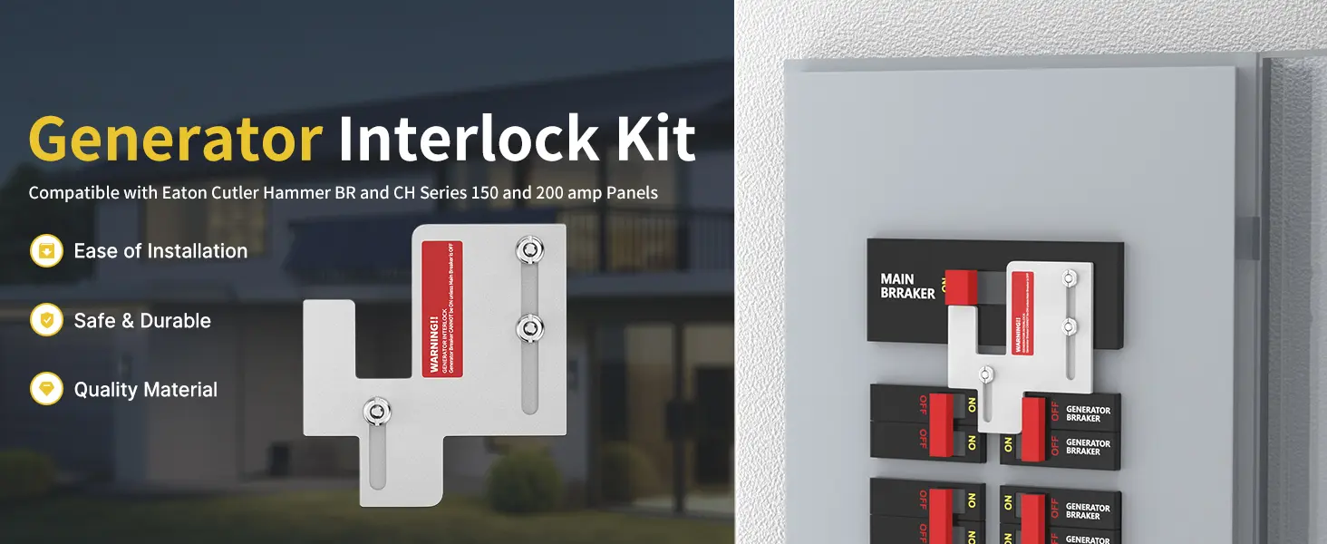 The generator interlock kit is designed for seamless compatibility with Eaton Cutler Hammer BR Series 150 & 200 amp breaker panels. This broad compatibility offers versatile use across different electrical systems of these widely available panels. This kit is designed for panels with Tan Branch breakers.
