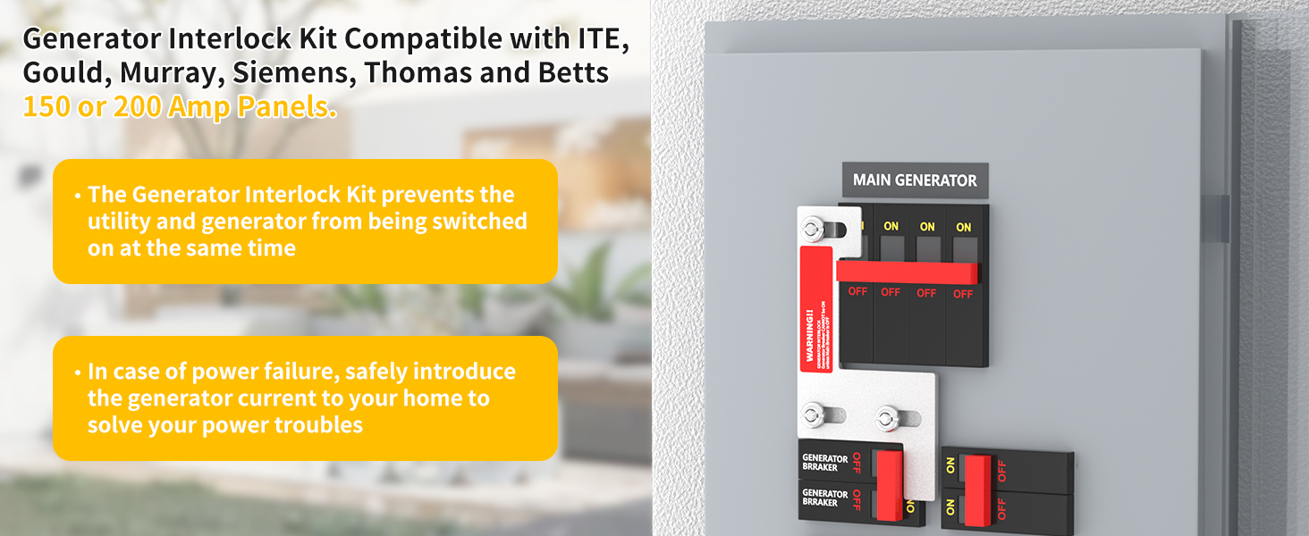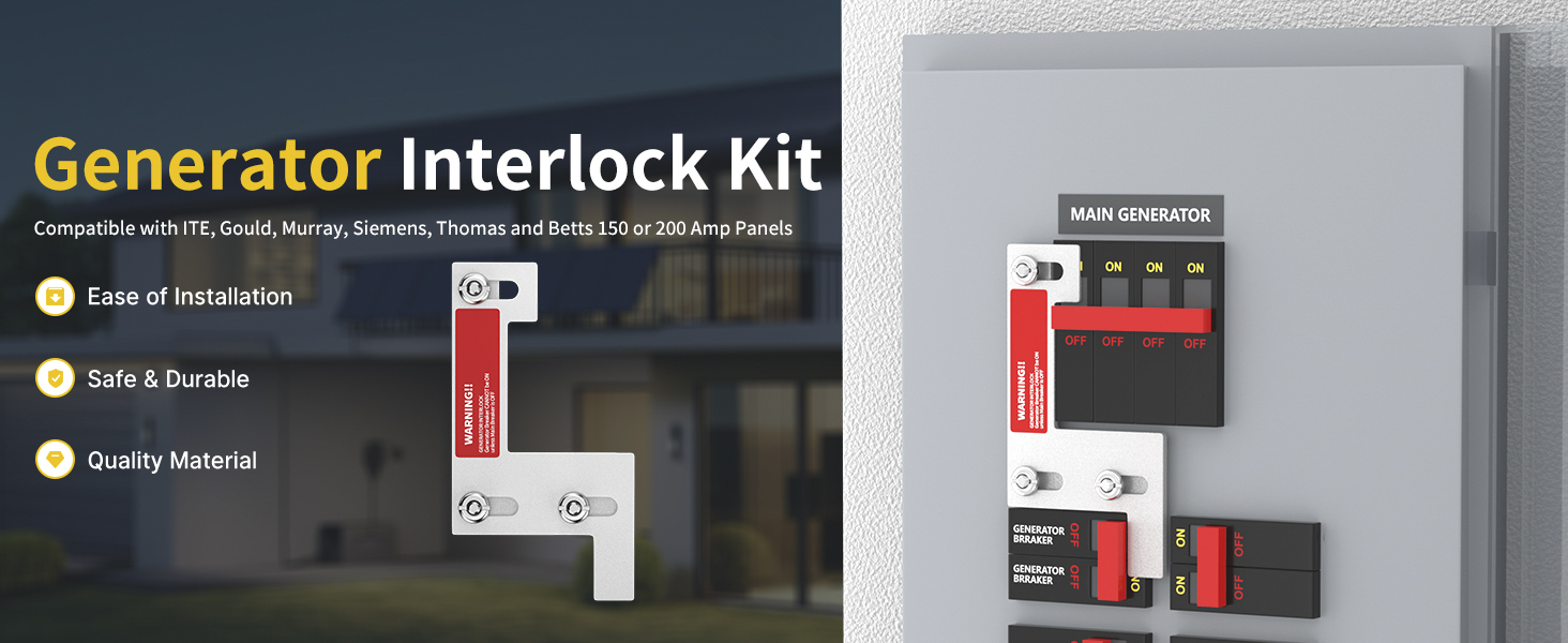 The generator interlock kit is designed for seamless compatibility with Siemens, ITE, or Gould 150A and 200A panels. This broad compatibility offers versatile use across different electrical systems of these widely available panels.