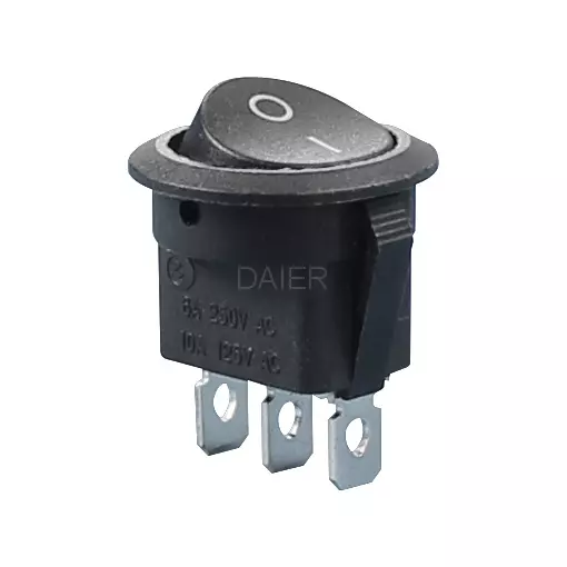 Daier KCD1-8-102 on on miniature round rocker switch offer a high switching current in a compact design.
