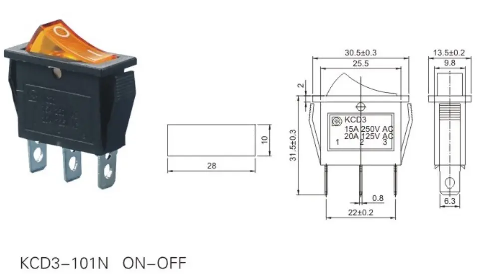 KCD3-101N Illuminated Rocker Switch 12V datasheet