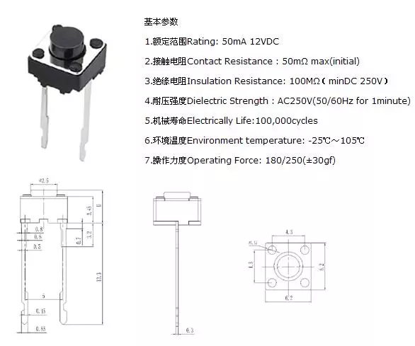 | Operating Direction: | Top Push | Travel: | 0.25mm |