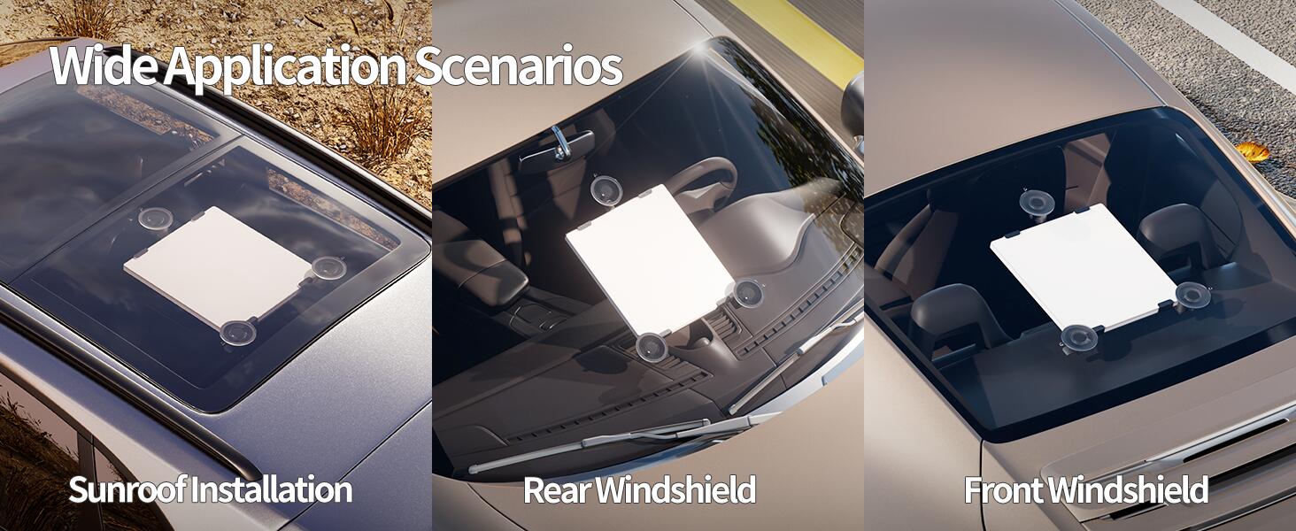 The suction cup mount offers versatile placement options within your vehicle. It can be securely attached to the sunroof, front windshield, rear windshield, or any other smooth, non-porous glass surface. The suction cups also enable quick repositioning or transfer to another vehicle as needed.