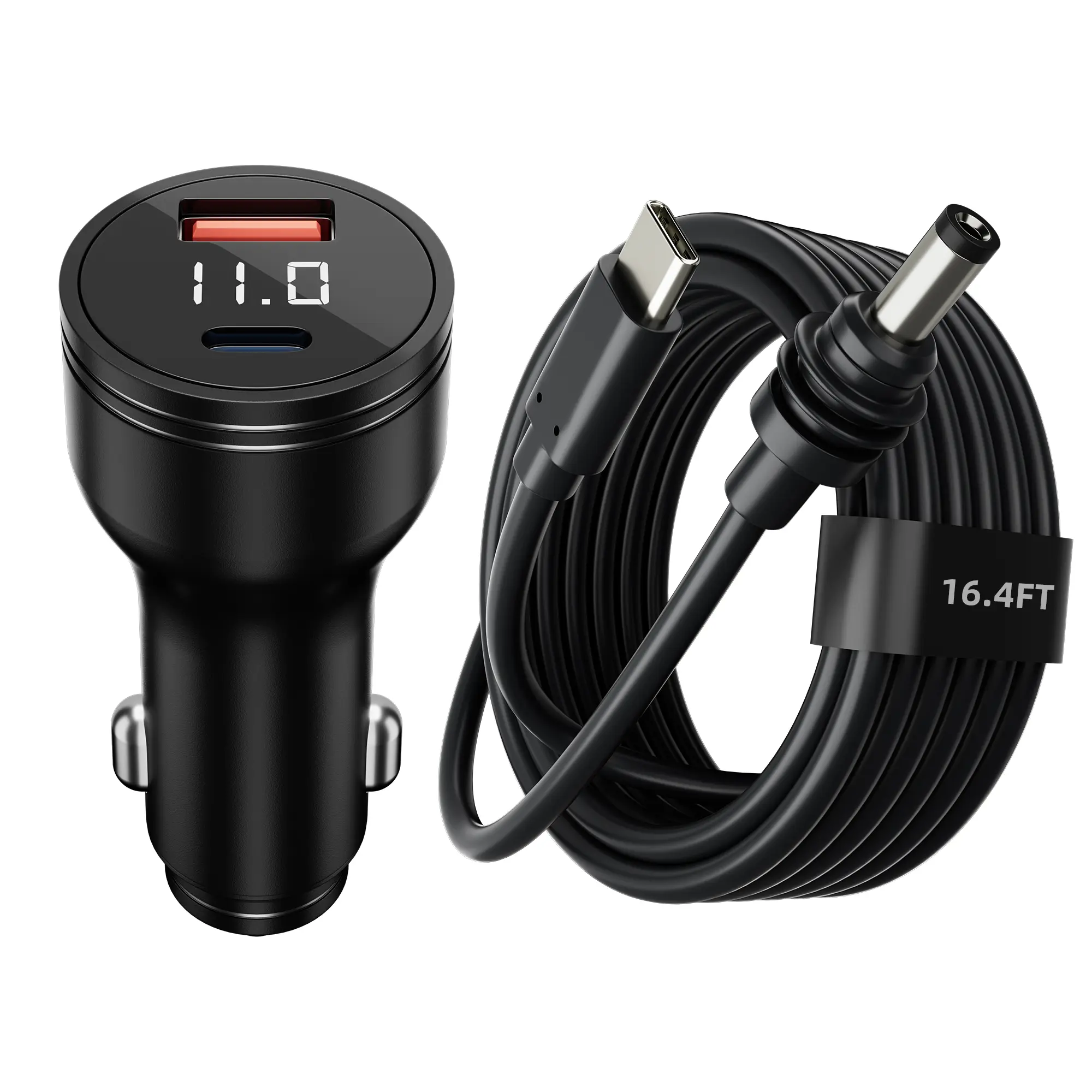MINI-USBC1 Starlink Mini 140W Car Charger & Cable | Dual Port 12V-24V PD Adapter with Voltmeter + 16.4ft USB-C to DC Cord