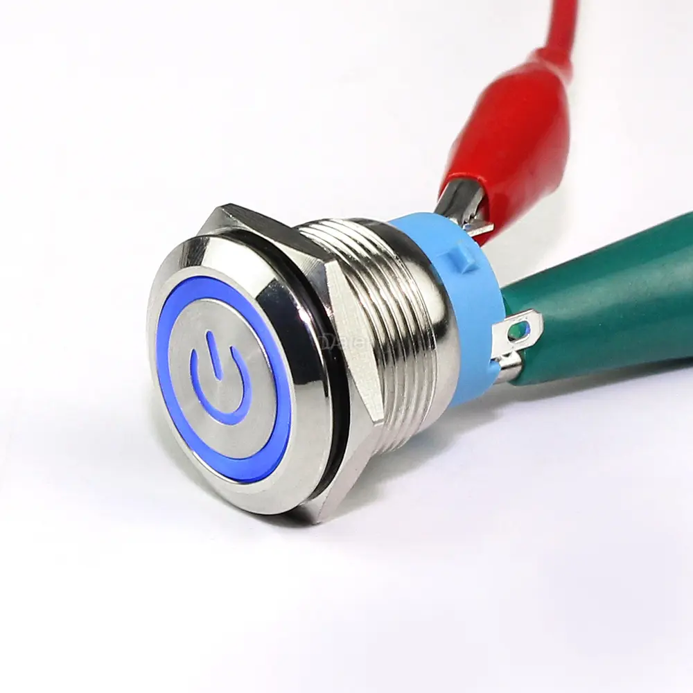GQ19F1-10EPM: OFF-(ON) momentary 4PIN, flat button, ring and power logo LED