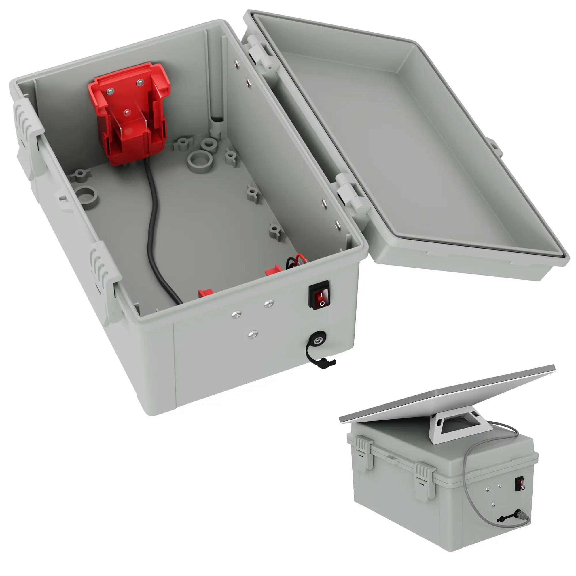 The outdoor junction box is crafted with a waterproof, high-strength shell made from durable ABS material, protecting the internal Milwaukee battery adapters and ensuring reliable performance in outdoor conditions—perfect for powering your Starlink Mini dish antenna anywhere.