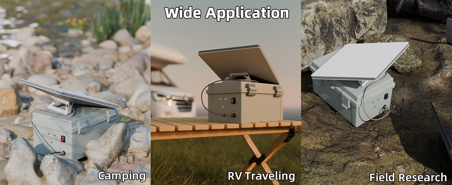 The outdoor junction box is crafted with a waterproof, high-strength shell made from durable ABS material, protecting the internal Milwaukee battery adapters and ensuring reliable performance in outdoor conditions—perfect for powering your Starlink Mini dish antenna anywhere.